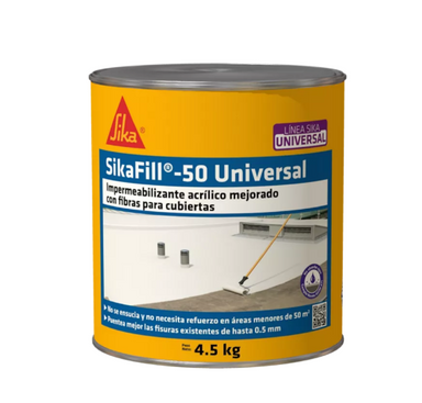IMPERMEABILIZANTE ACRÍLICO, MULTIPROPÓSITO, ANTIHONGOS PARA CUBIERTAS, TECHOS, TERRAZAS Y FACHADAS. SikaFill®-50 Universal es un recubrimiento elás...