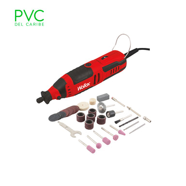 -120V~ 60Hz-Cable de alimentación de 2 m-Collet: 1/8” (3.1 mm)-Velocidad variable -Gancho de sujeción-Incluye estuche y 40 accesorios-Para rectific...