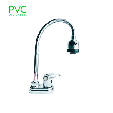 Llave lavaplatos flexible, para mezón o paredDoble función (chorro y regadera).Cuello flexible.Cruceta plástica.Cuerpo plástico cromado.Vástago plá...